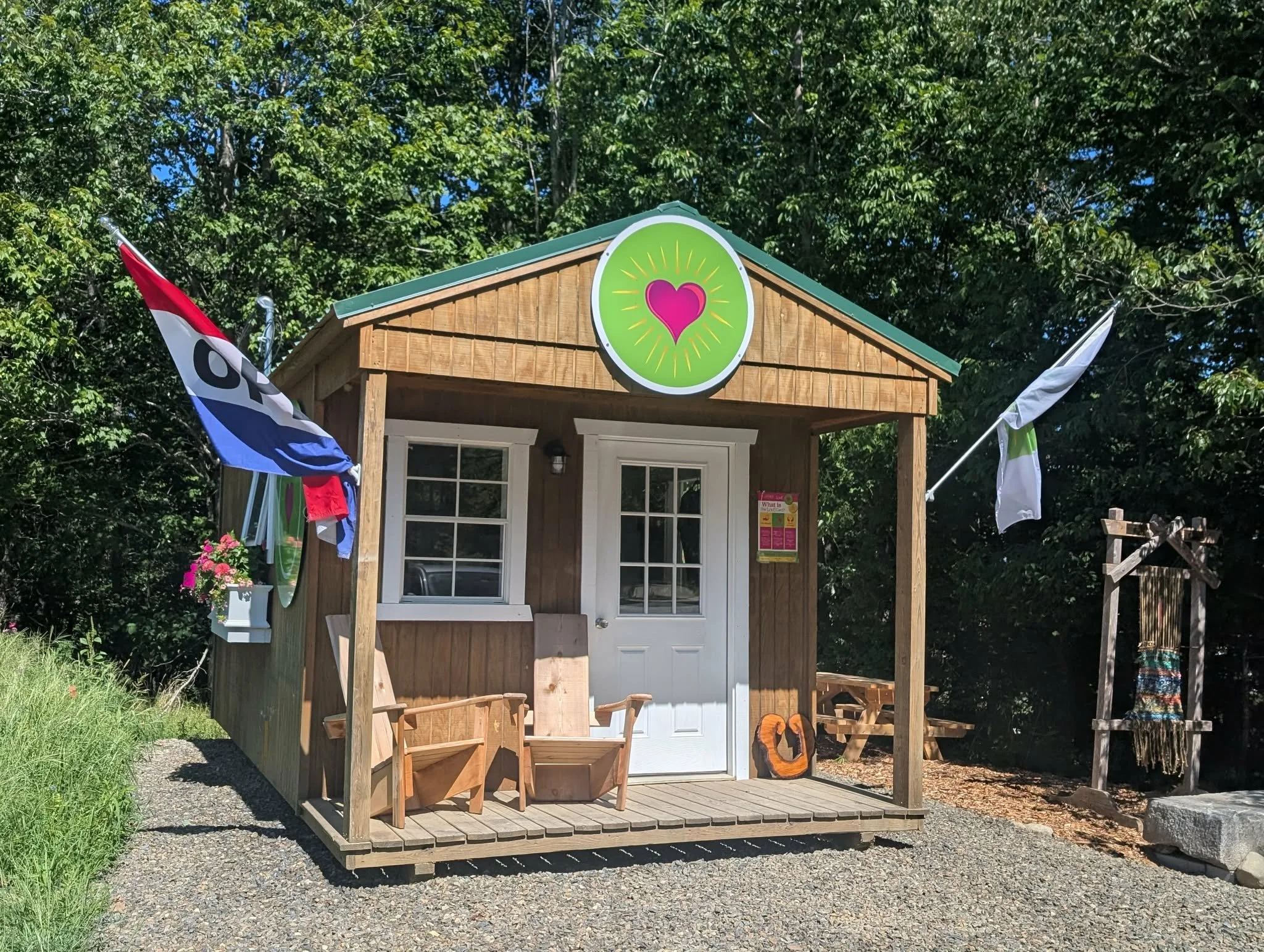 When visiting The Love Card Cottage, please bring ribbons, words, fabrics, and intentions to weave into our loom, located outside to the right of the entrance.